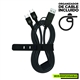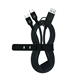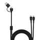 Cable para carga y transferencia de datos con conector Tipo C + Tipo A a doble cable Tipo C, 3A transferencia rápida, 1.2m de longitud, en color negro, 100% reciclable y fabricado con plástico 100% reciclado de origen certificado RCS - RECYCLED CLAIM STANDARD.