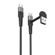 Cable para carga y transferencia de datos con este conector Tipo C + Tipo A a Tipo C, 3A transferencia rápida, 0.2m de longitud, en color negro, 100% reciclable y fabricado con plástico 100% reciclado de origen certificado RCS - RECYCLED CLAIM STANDARD.