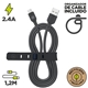 Cable para carga y transferencia de datos con conector USB a Micro USB, 2,4A transferencia rápida, 1,2m de longitud, en color negro y 100% reciclable. Con un diseño patentado y homologado con el certificado CRS, conforme son productos reciclables y hechos con productos reciclados. Carga tus dispositivos cuidando el planeta en el proceso, y llévate de regalo un organizador de cables gratuito.