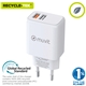 ¡En casa, la oficina o donde lo puedas conectar, carga tus dispositivos y contribuye a cuidar el planeta! El cargador rápido de pared muvit for change de 3.4A, con doble entrada USB A, está fabricado con plástico 100% reciclado, no compromiendo en absoluto ni la calidad, ni la apariencia de nuestra gama de carga eco sostenible. ¡Pero eso no es todo! También nos hemos preocupado de diseñar un packaging eco responsable, en cuya fabricación se ha empleado cartón reciclado y reciclable, evitando así utilizar plásticos y pegamentos no orgánicos.