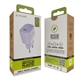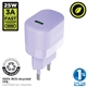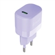 Cargador de pared con clavija europea de un alegre color lavanda. Dispone de 1 Tipo C PD 25W de potencia para carga rápida y está fabricado con materiales de origen certificado RCS - RECYCLED CLAIM STANDARD y 100% reciclable. (cable no incluido).